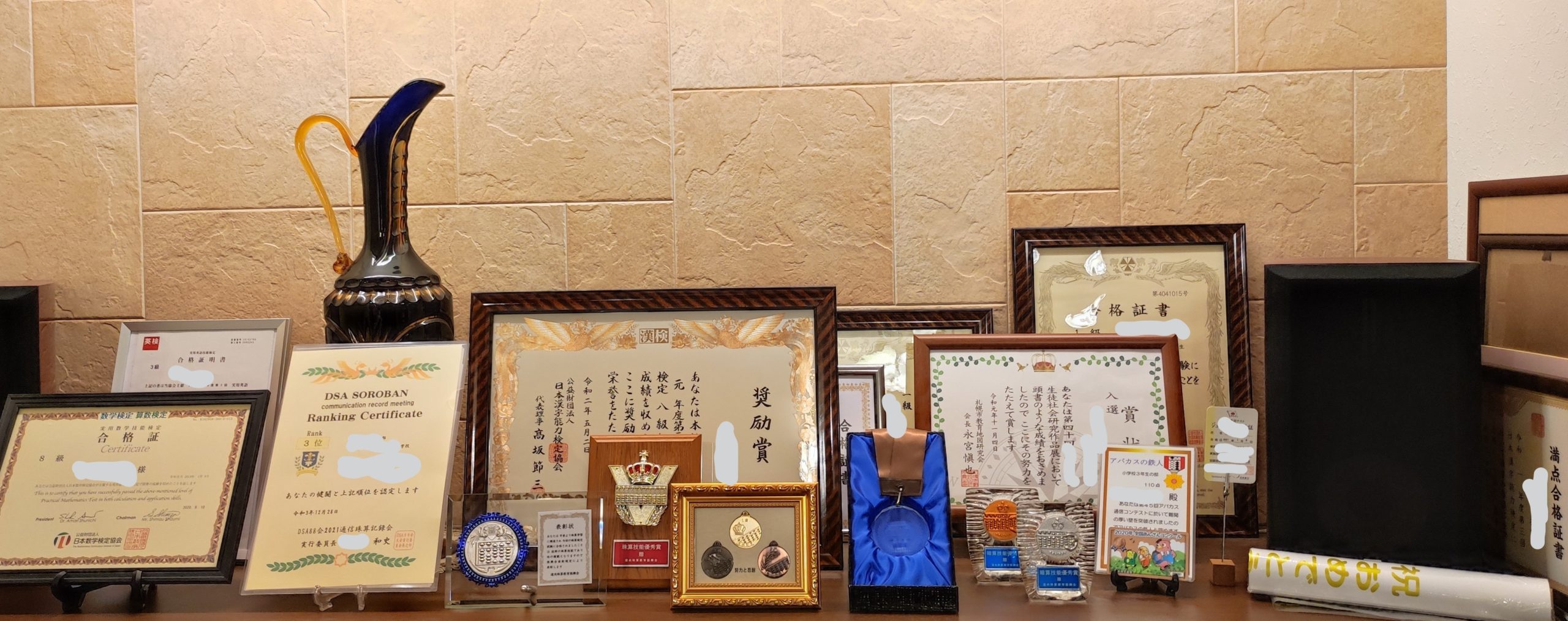 ※賞状は、暗算・珠算・英検・漢検・数検・スキー・国土地理院関係のものです。