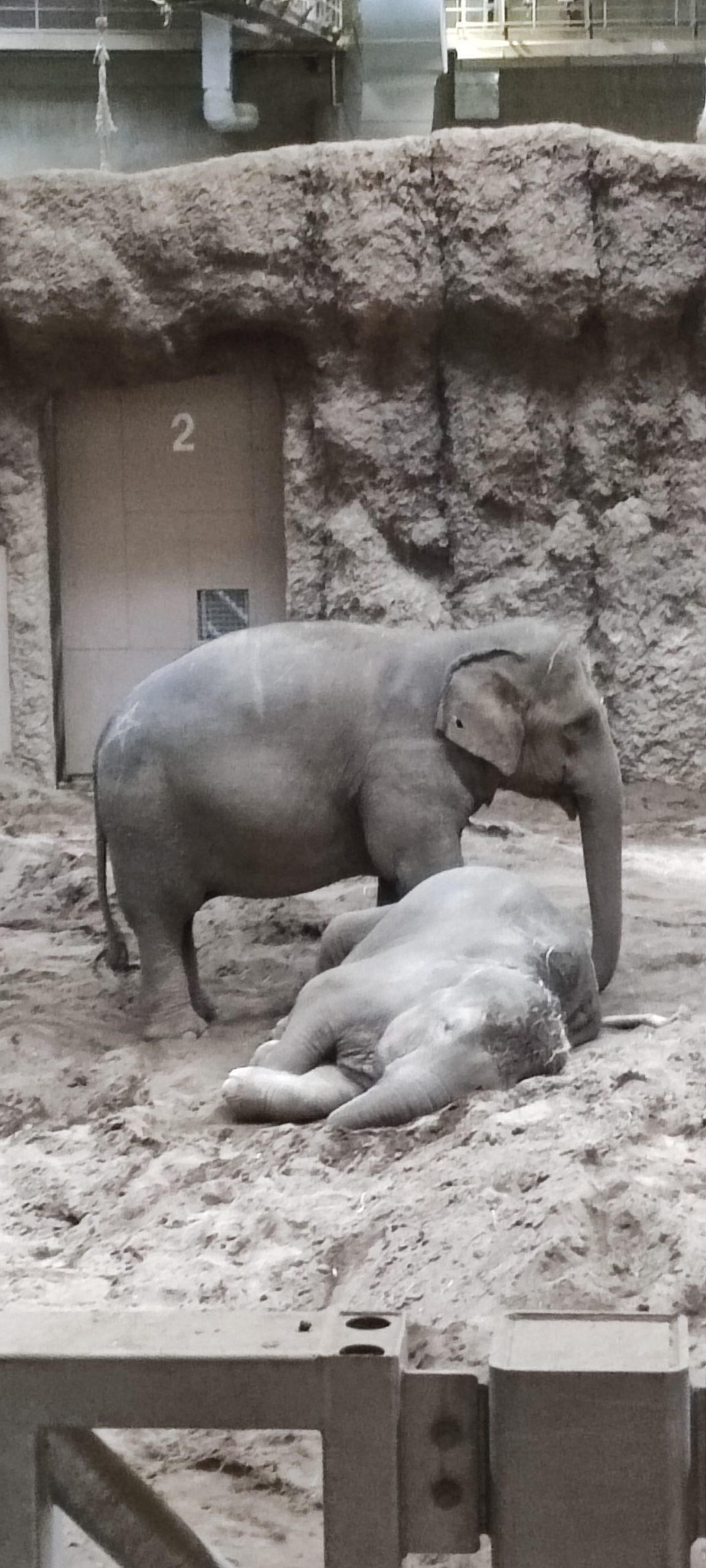 子供のぞうさんが、お昼寝してました(^^)側で見守るのはママかな。皆に見られながら、こんなに爆睡、珍しいかも。可愛い。