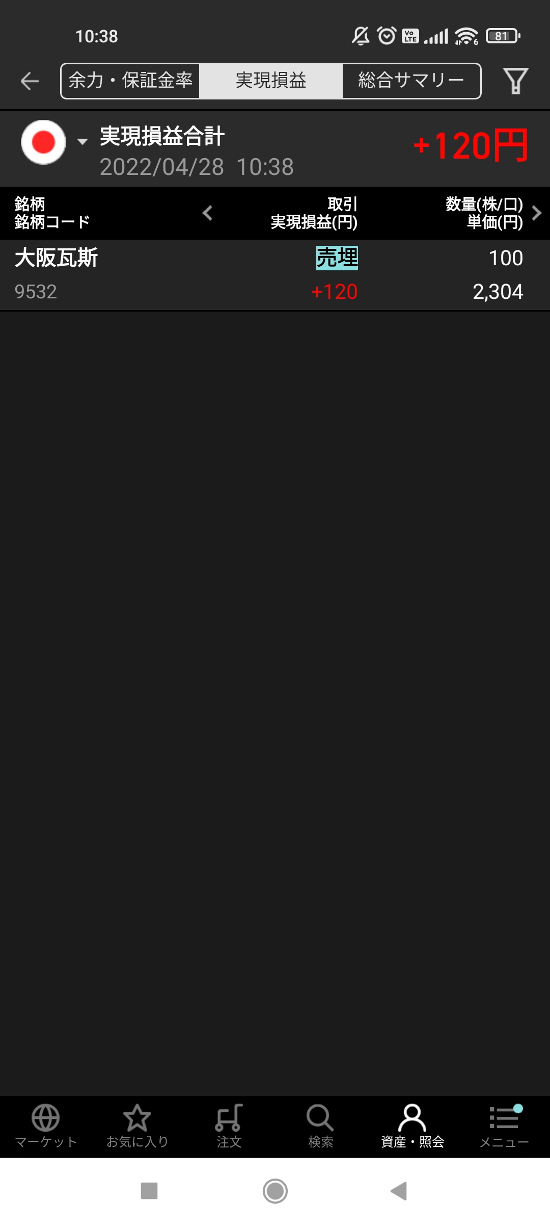 そんなわけで、ワントレだけ入ってみましたが早々撤退。笑える…120円。(日ベースの月間勝率には含めません)