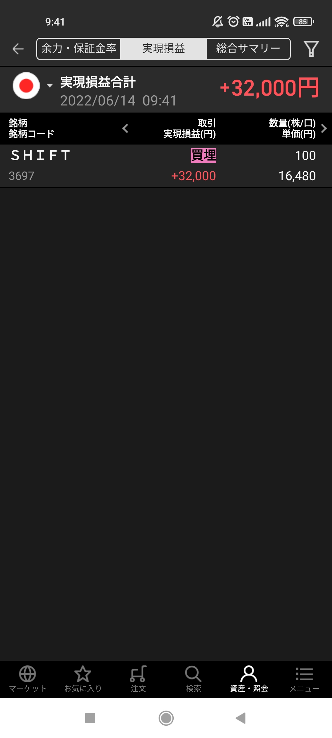 | 1 | 3697 | SHIFT | 9:04-9:06 | 16800-16480 | 売 | 勝 | 100 | 32,000 |