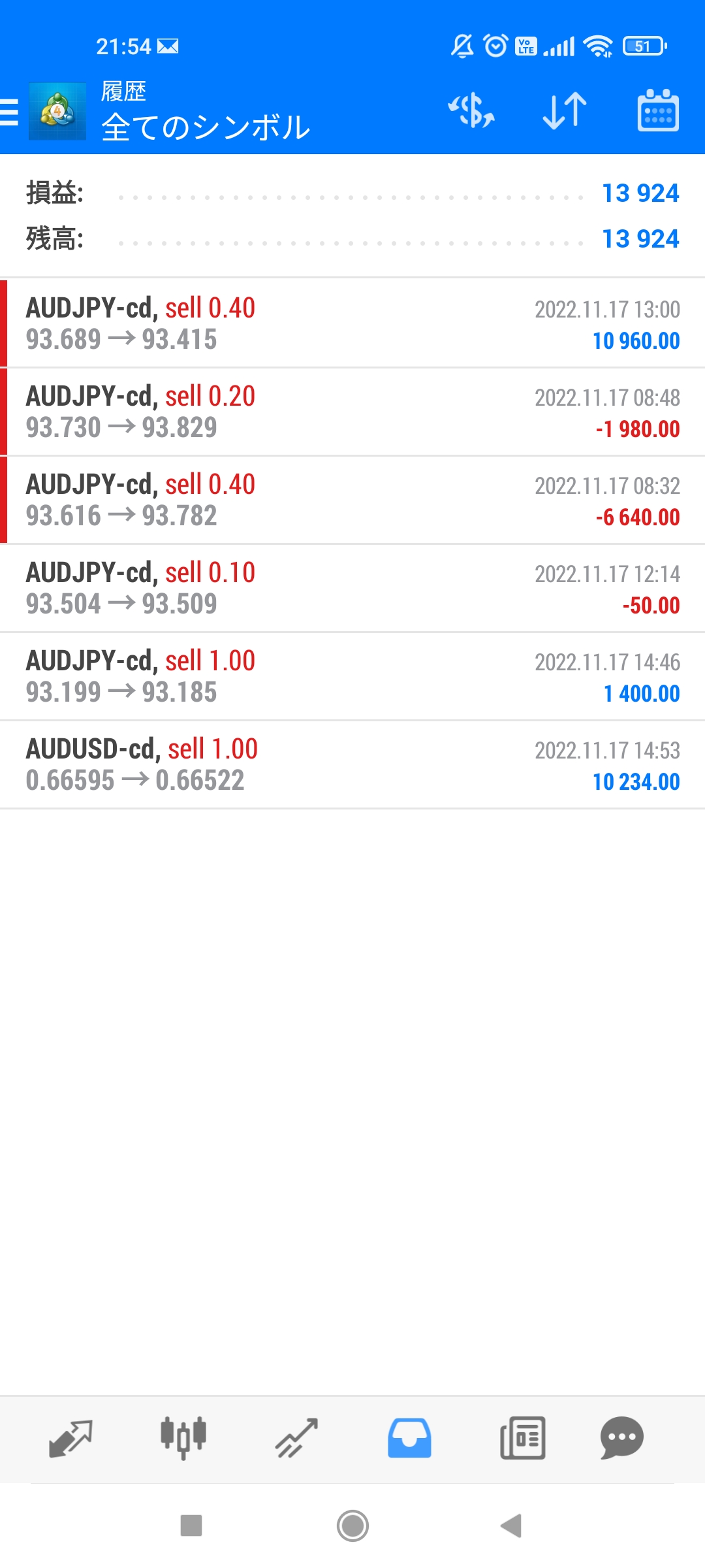 損切り設定値をタイトにしすぎると損切りの嵐になってしまうんですね。同じ通貨で同じ方向にエントリーしたのに、損切り設定の値の違いで、こんなにも結果に差がでてしまうなんて。