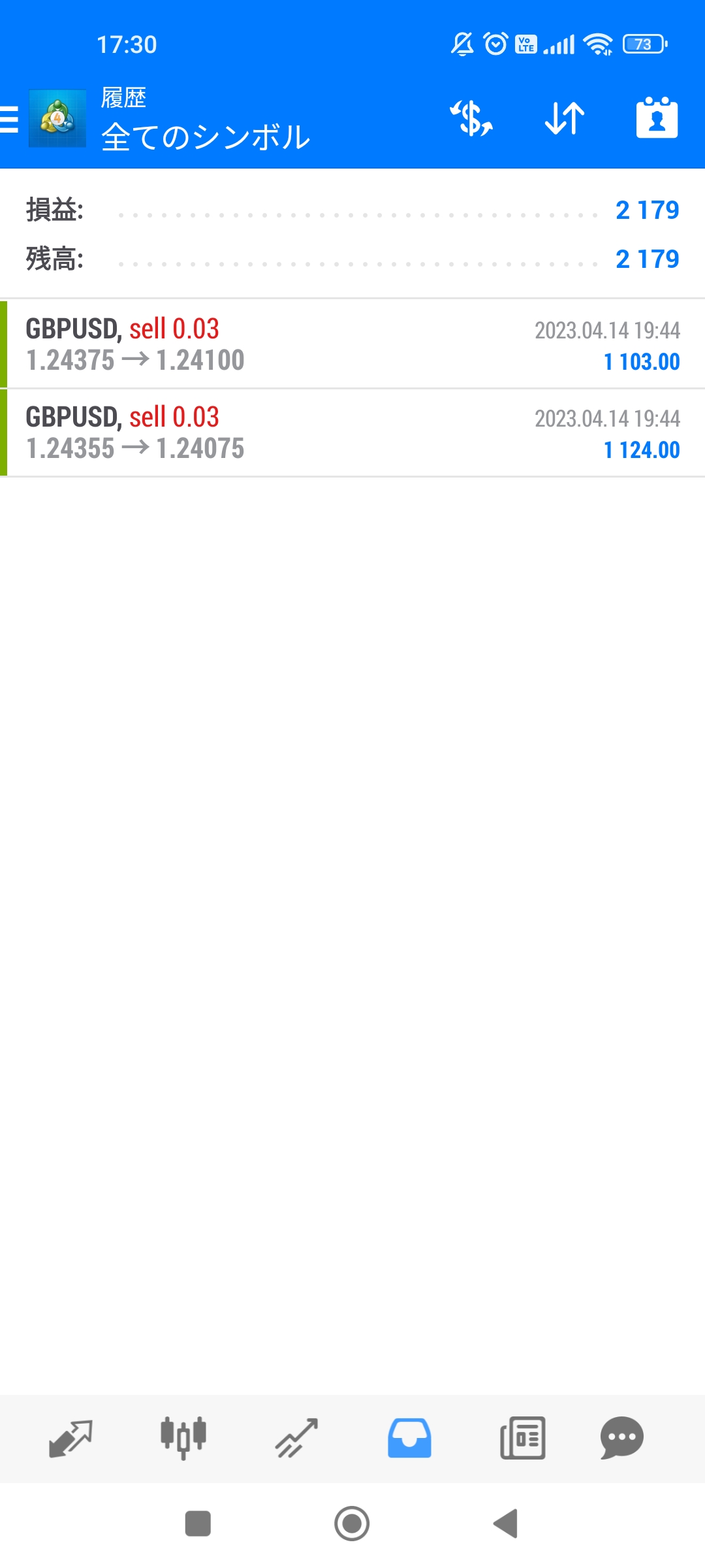 朝、目が覚めたら証券会社からメールが来ていて、あれ?トレードしたっけ??と思って開いてみたら、微益利確で朝食代をGetしてました。あまりにもすっかり忘れていて、どっち方向にトレードしたのかも最初はわからないくらいでした。極小ロットだったので、気にしない程度とは言え、気にしなさすぎです…。汗