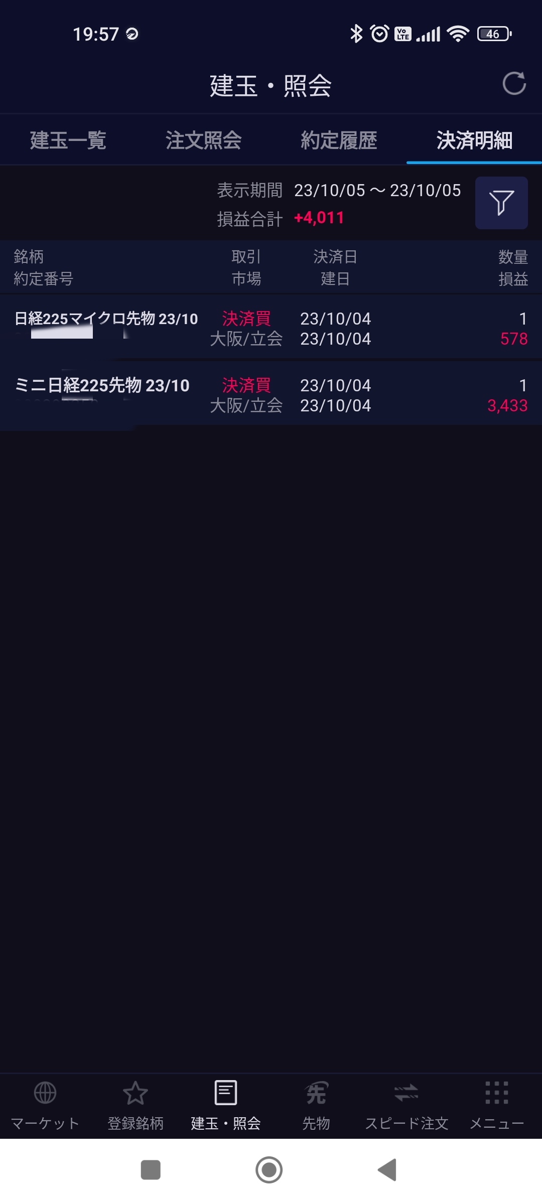 もしかしたら、先物の世界では夕方からスタートなのかな???損益額の設定日が午前中は10/4までだったのに、今では、10/5までできまして、そのお陰で、夕方の検証トレードだけの表示ができました。