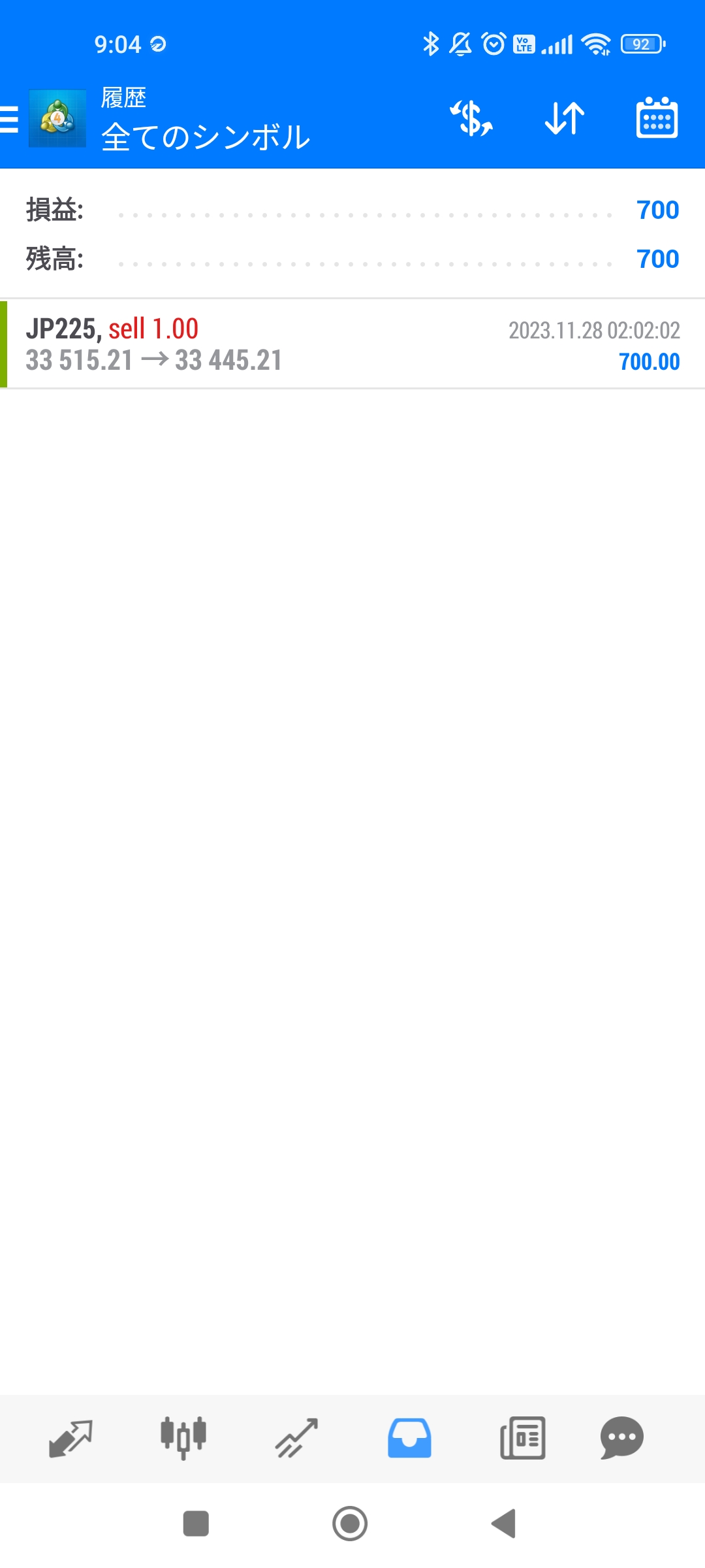 利確しても、しょぼい額ですが、寄り付き前に1分チャートを見て、エントリーしてから2分以内のことだったので、3分で700円利確です。ノーストレスだったし、練習の身ですから、まあ、良しとします。