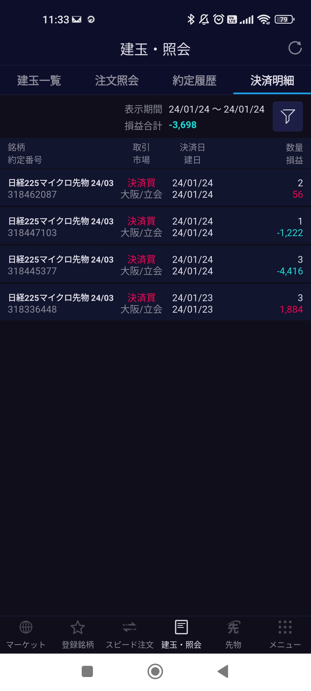 最後、2枚だけ残して、仕事に逃避行してましたら、微益になりました。全て切らずに放置していたら、合計でも微益は確保できたことになりますが、そんなことをしていると、いつかもっと大きなドボンになりそうなので、「まあ、こんな日もあるさ」も言うことにしておこうかな。凹